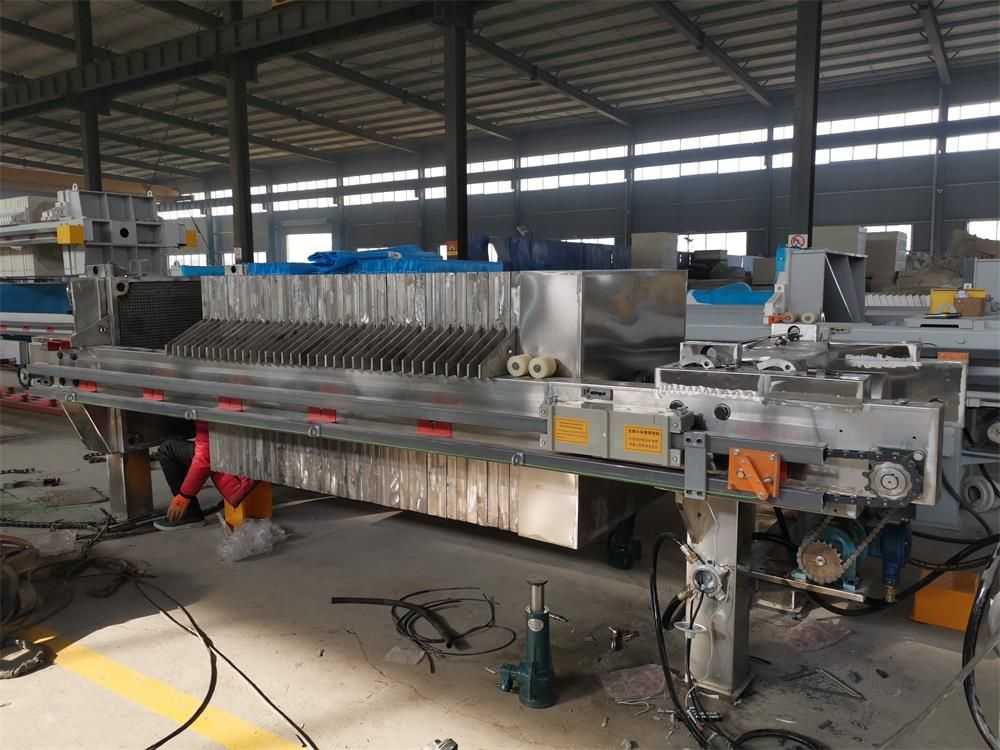 全自動廂式壓濾機與普通廂式壓濾機的不同之處在于多了自動拉板系統,自動接液翻板,自動清洗濾布等系統。使設備操作更加智能化自動化。整機結構設計科學合理,機械強度高、結構穩固、經久耐用并且便于操作和維護。